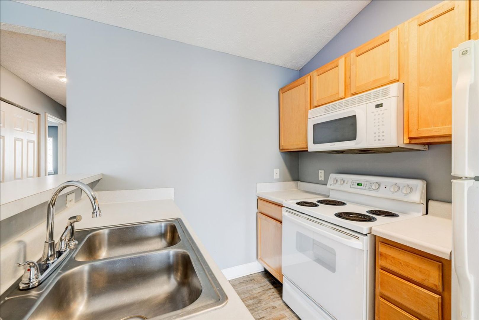 Full kitchen with stove, microwave, refrigerator & dishwasher & Washer Dryer Hook up in unit!