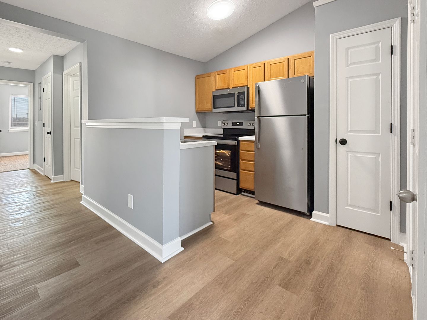 Full kitchen with Stainless Steel Stove, microwave, refrigerator & dishwasher & Washer Dryer Hook up in unit!