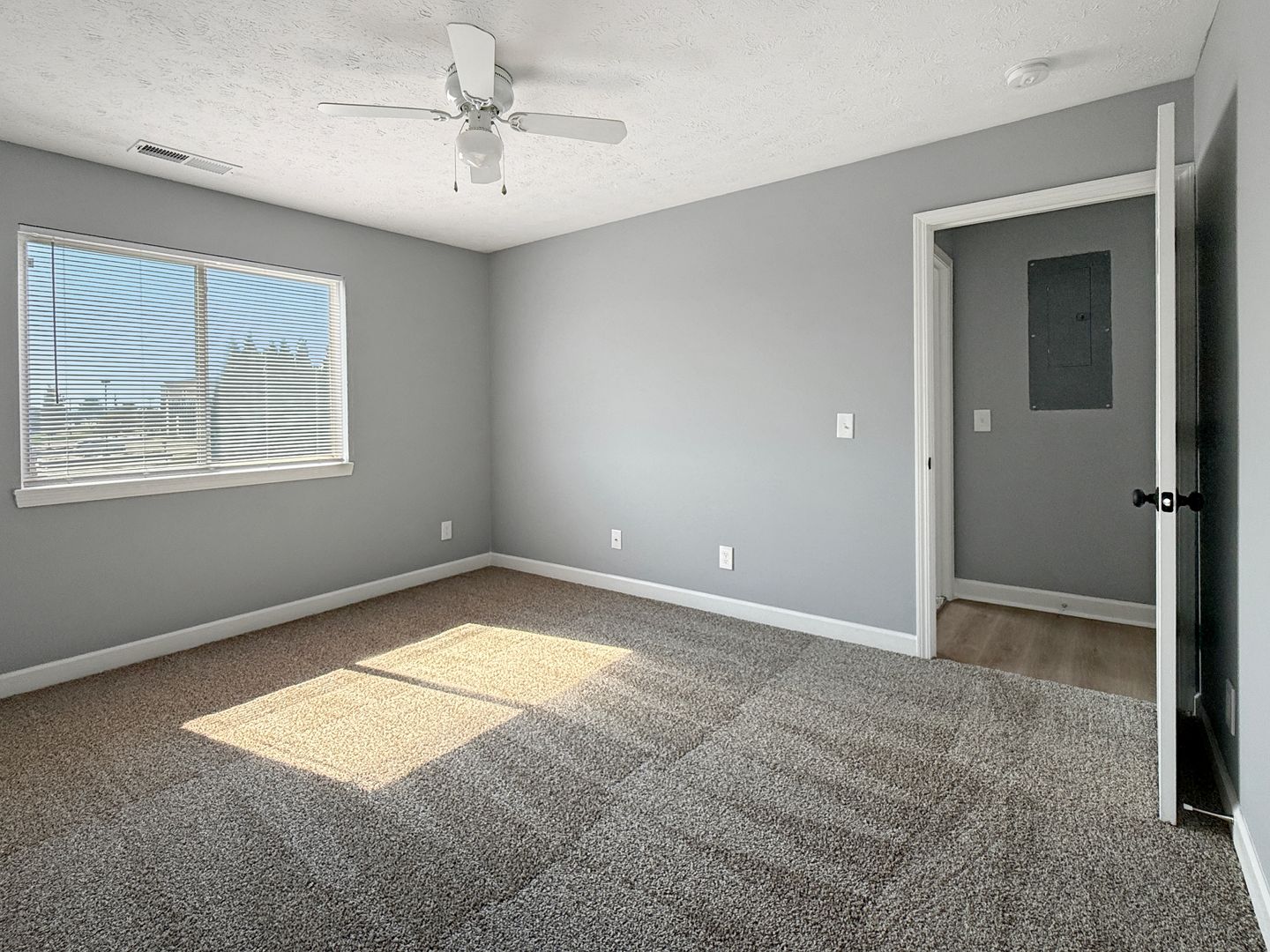Newer Built 2 bedroom 2 bath and High Ceilings, new Carpet, new 2 tone paint, Ceiling Fans. Master suite has walk in closet and private bath.
