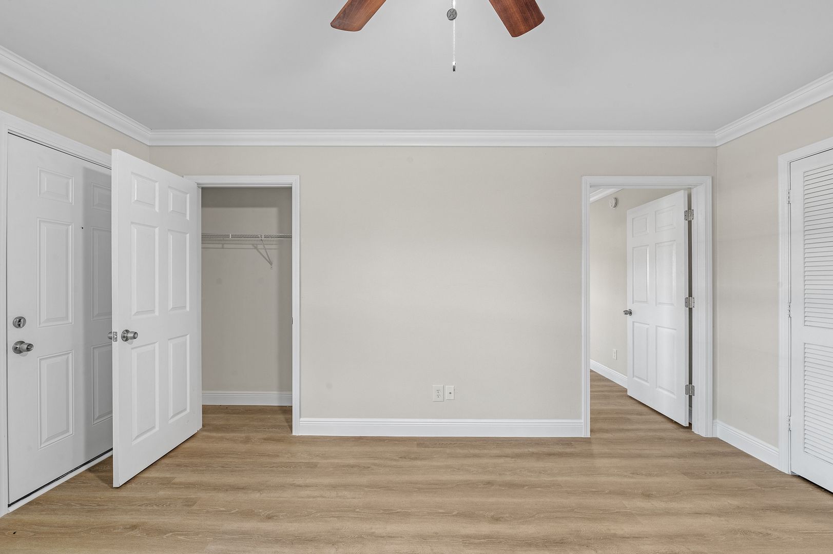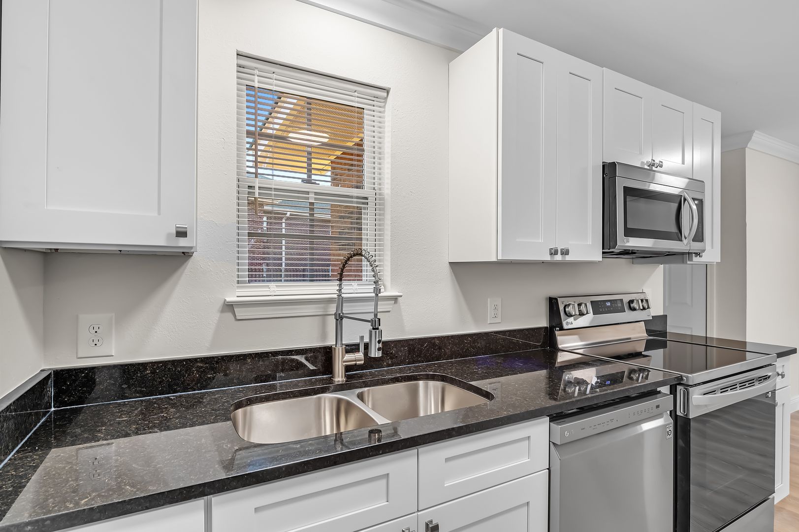 Solid wood cabinetry, granite countertops, stainless steel appliances, in unit washer/dryer hookups, crown moulding, luxury vinyl plank flooring, all new LED lighting and so much more on this renovated 1 bedroom.