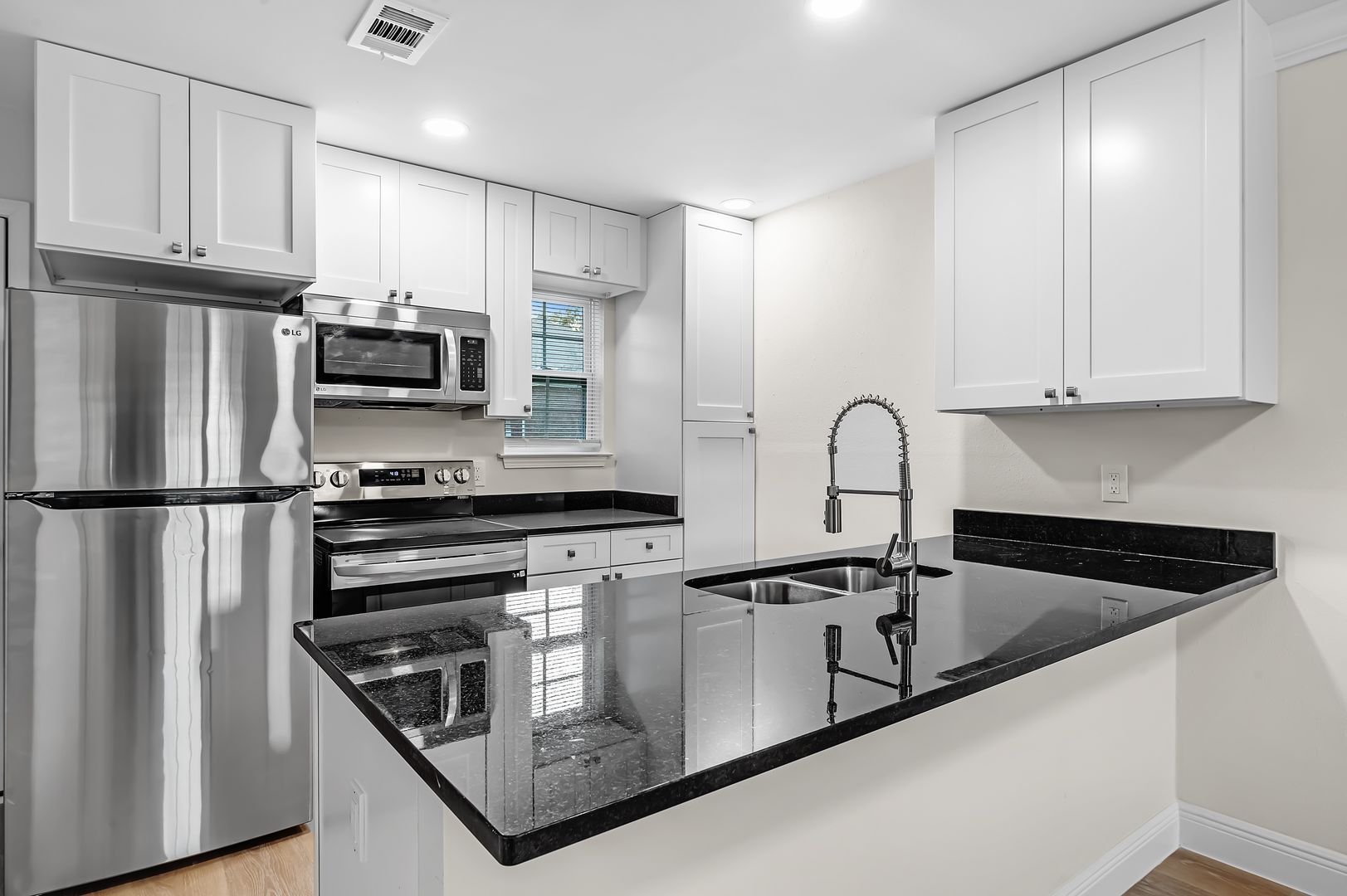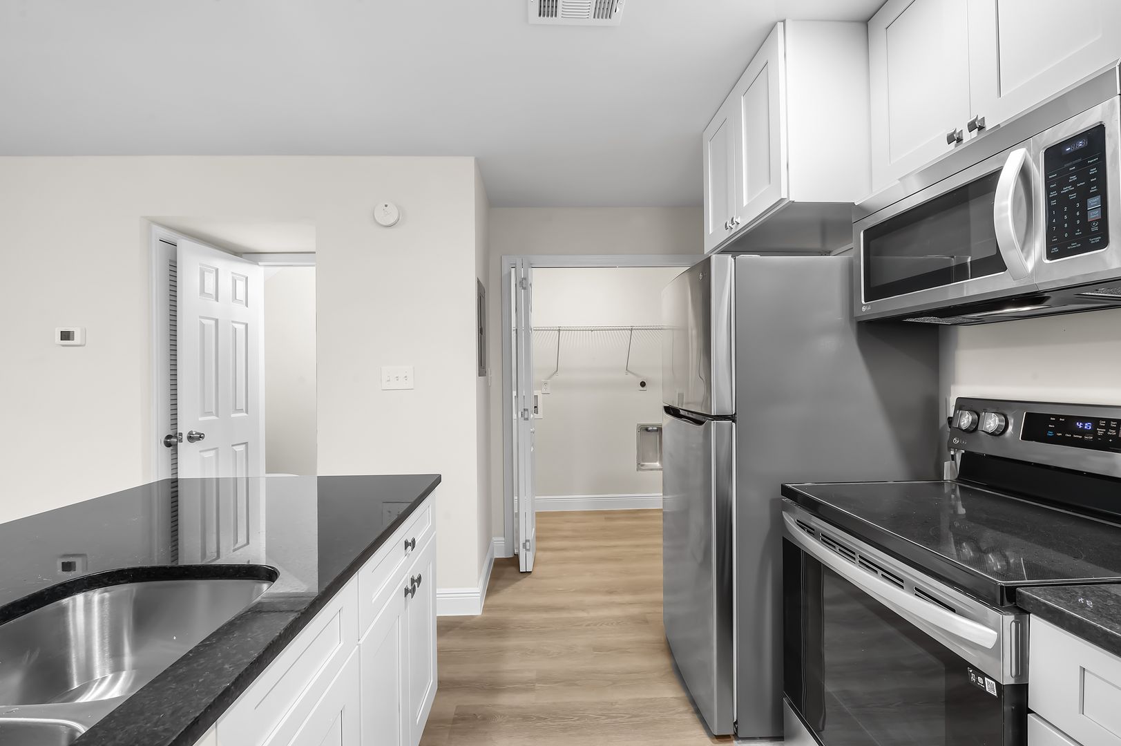 Solid wood cabinetry, granite countertops, stainless steel appliances, in unit washer/dryer hookups, crown moulding, luxury vinyl plank flooring, all new LED lighting and so much more on this renovated 1 bedroom.